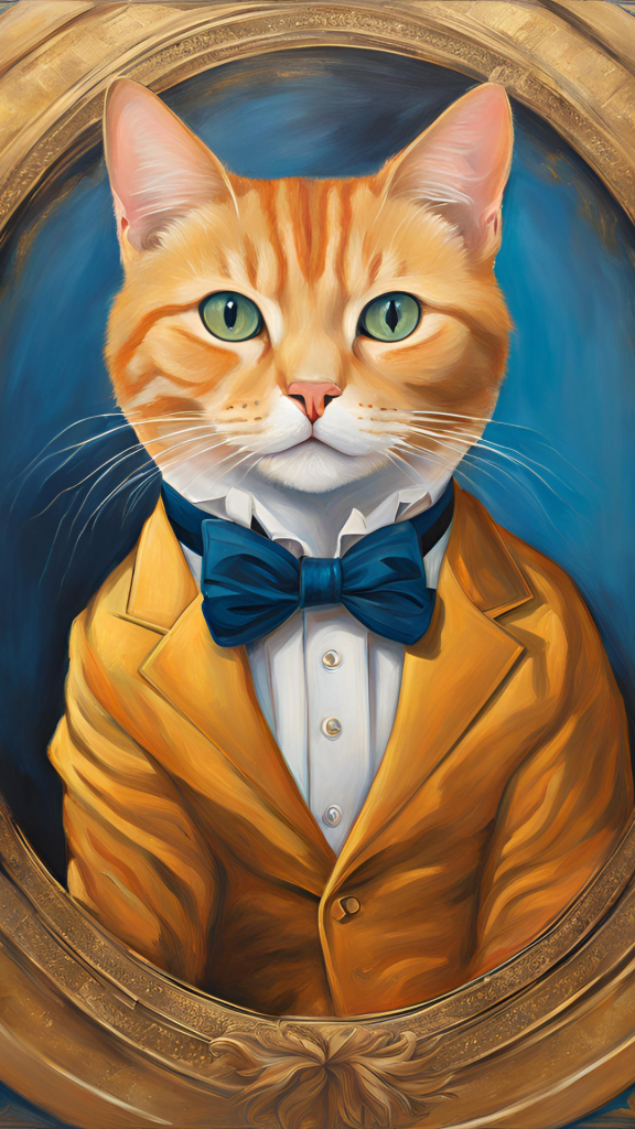 - Beautiful oil painting of a noble orange cat, styled with historical elegance.